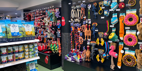 A wide selection of premium dog food, cat food, bird feed, and small pet essentials