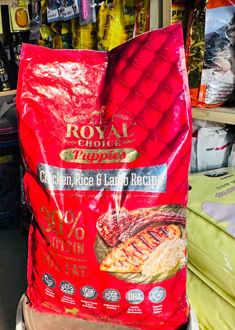 Royal Choice Premium brand of food is a complete and balanced Dry food with chicken, rice and lamb recipe–Highly palatable and nutritious. Rich in antioxidant and probiotics, supports the immune system and promoted healthy and balanced grow, support muscle and bone development, healthy brain and eye development.